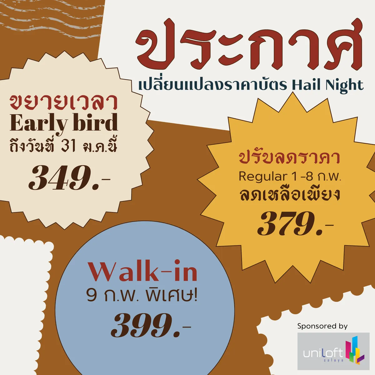 | EARLY BIRD | 349 THB | NOW - 31 JAN 2024 |
